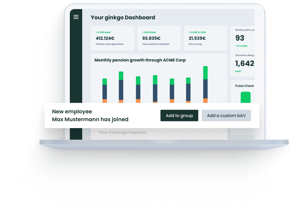 Marktübliche betriebliche Altersvorsorge (bAV) ist oft wenig wertschaffend. Wir ändern das - mit der ginkgo bAV. Entdecke die moderne Lösung mit echtem Mehrwert für Mitarbeitende & Unternehmen.