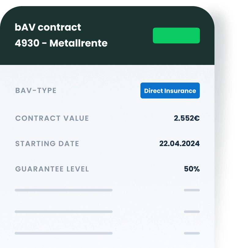 As part of the ginkgo bAV launch in the company, ginkgo also supports the implementation of existing bAV contracts on the ginkgo platform. This allows all documents and activities related to bAV to be consolidated on a single platform. In coordination with the company, ginkgo also supports the transition from existing bAV contracts to the ginkgo bAV, as well as the transfer of bAV capital for new employees.